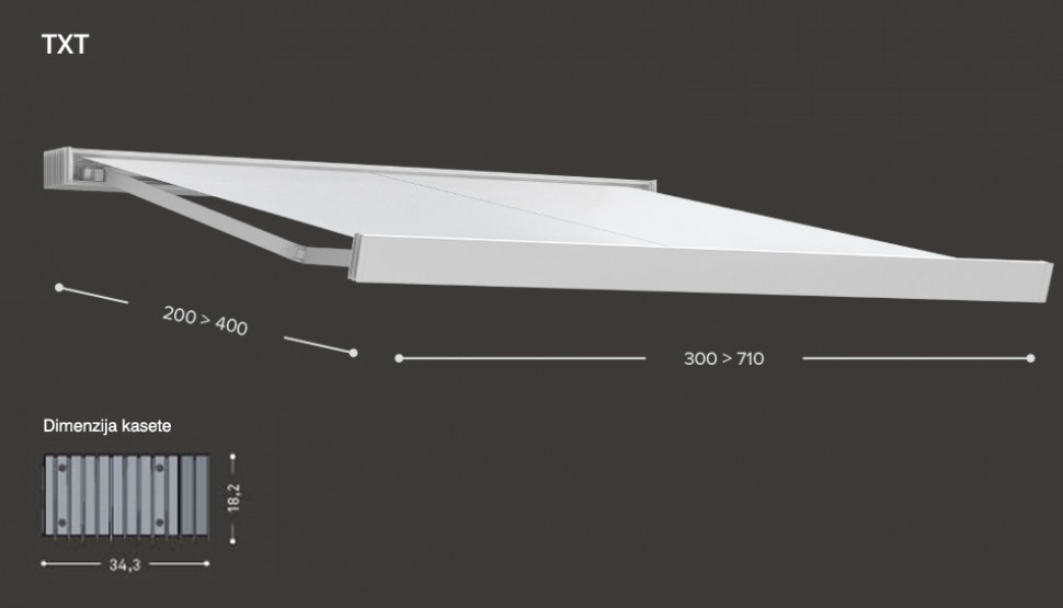 • Odpornost na veter: CE - Razred 2 pri dimenziji: 710x400 cm.
